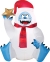 Even Bumble gets tired of look at the top of everyone head! This sitting Bumble airblown is great to add cheer to anyone's Christmas display. Bumble comes wearing a Santa hat and scarf. Small children will love him because he is more approachable and will want to take pictures with him. The high performance fan and energy-efficient LED lights bring Bumble to life. He proudly sits tall and is wide. He can be displayed indoors or outdoors using the included stakes and tethers. Best part is he is easy to deflate and store so you can resume the magic every winter.