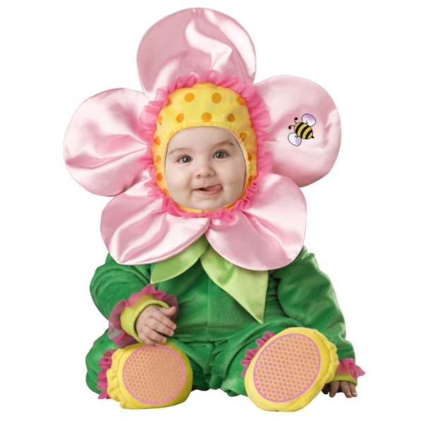 Lined zippered jumpsuit with leg snaps for easy diaper change, hood with attached petals and bee accent plus slip-on booties with skid resistant bottoms. (Booties are for indoor use only). Toddler 18-24 months.