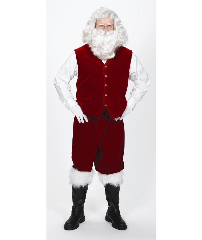 No need to check your list twice – the Santa suits that will make this year's holiday celebration a bona fide jolly time have arrived! Big and small, short and tall, classic and unique, this festive collection will outfit you and your loved ones with unforgettable Christmas cheer. Here at The Costume King, we carry a variety of men's Santa suits that will dress up dads and males better than any run-of-the-mill department store St. Nick. Check out our Santa beards for men to discover a selection that covers every budget, including comfortable and versatile for home or school use and premium crafted beards for theatre groups and executive gatherings that will impress business clients. Don't miss our Santa costumes for women, which range from merry "Miss Santa" outfits to unique ponchos to traditional Mrs. Claus garb. You'll find a wide selection of red and white Santa suits for women with a wide range of hats, plus our popular stylish and sexy ensembles for attending costume parties, going out on the town, or an intimate holiday get-together. We also offer essential Santa accessories to complete any costume. Add black Santa boots, festive belts, colorful toy bags, dazzling decorations, even a Santa belly to really get your Kris Kringle into character. For the home or office, personal or corporate use, our Santa suits and accessories will put a little jingle in any celebration!