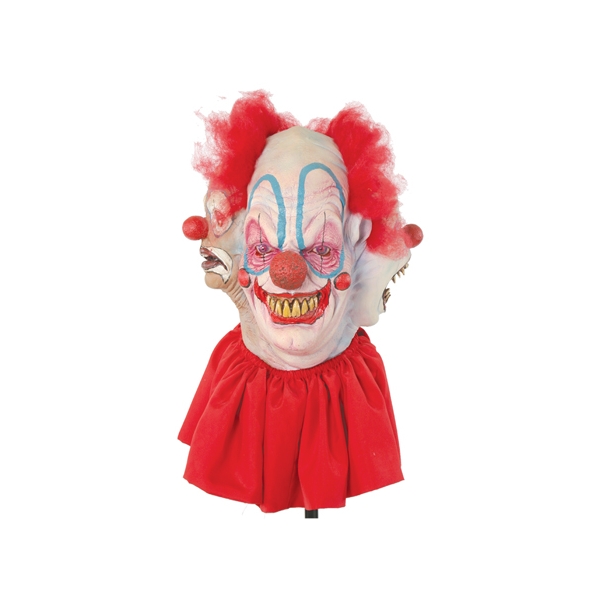 What can be scarier than a clown? How about one with four faces! Each one scarier than the next. Latex mask with cloth collar.