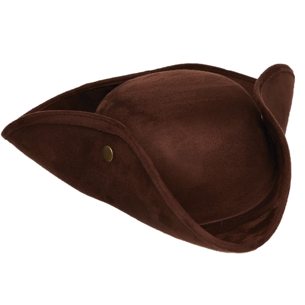 A Great Hat For Any Colonial Style Costumes For School Or Theatrical Work As It Looks Very Realistic. Even Great For Use As Part Of A Pirate Costume. Colonial Style Faux Suede Tricorn Hat. Brown. One Size Fits Most Adults.