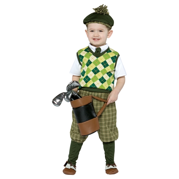 Get Your Child Ready To Be The Next Tiger Woods Or Payne Stewart With This Great Little Golfing Costume Perfect For Your Little Sportsman! Beret, Shirt, Pants, Shoe Covers, Golf Bag, And Clubs. Fits Tolddler Sizes 3T-4T.