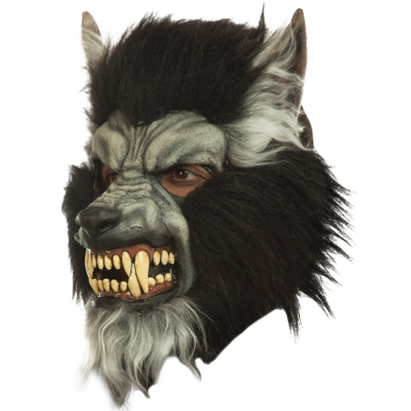 Menacing Gray Howling Werewolf Mask represents a creature from ancient legend. Brilliant in its detail, this frightening full Over-the-Head Latex Mask has thick dark fur with gray highlights and pointed ears along with a menacing snarling look with huge sharp teeth! It is said that on nights when there is a full moon, these creatures will roam about looking for new prey. The perfect Halloween accessory or addition to any fun costume party, Video shoot, or Haunted House.