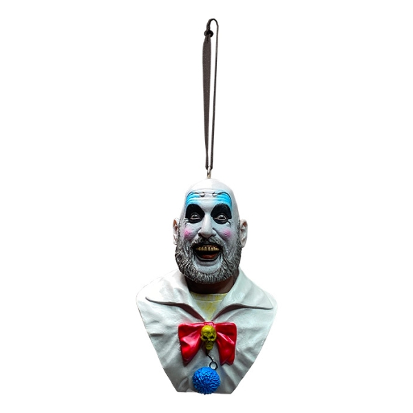 The Officially Licensed Holiday Horrors Captain Sapulding ornament from the cult classic horror movie House of 1000 Corpses. Each immaculately painted resin ornament is detailed to perfection. The piece is featured in a graphic display box with clear vinyl window to highlight its unique and detailed design. Included is an attached ribbon so you can hang the bust in a variety of settings ranging from your Car to your Home or Office. Make an impact with an iconic instantly recognizable character painted to perfection and durable enough to enjoy for years!