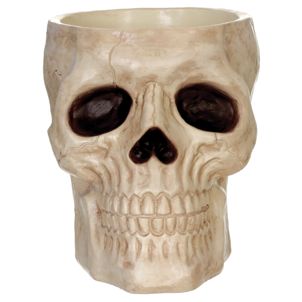 Nothing could be more appropriate for a Halloween bash or greeting trick or treaters than this molded ABS plastic Skull Candy Bowl! 9.5 inches tall with hand painted decay discoloration, and realistic cracks and grooves gives this skull a realistic antiqued look. Great for parties, trick or treaters, a key bowl, catchall or just a fun year round decoration piece!”_
