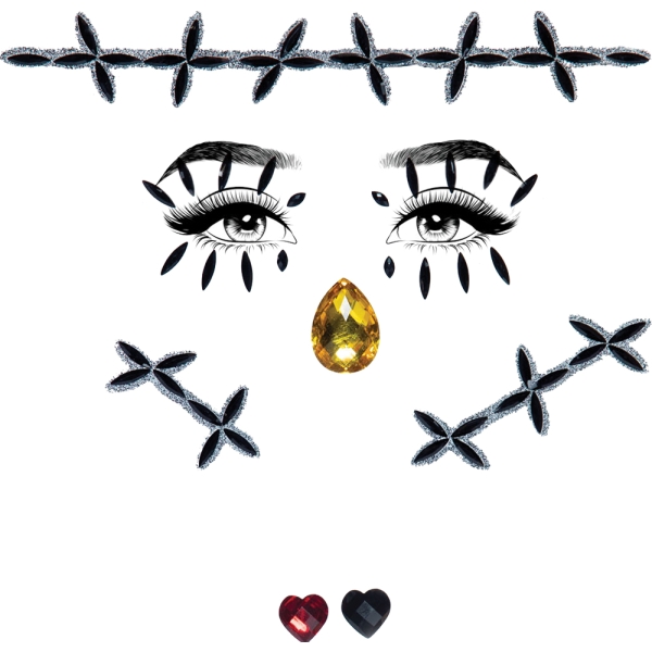 When you are going for the stitched back together look, use this adhesive face stich jewel sticker to be the envy of every rag doll and scarecrow. Looking your best, makes you feel your best. Glam it up with this jeweled sticker to look like you are stitched up with gems and not the same thread everybody else uses. This easy to apply look can be placed on bare skin or to enhance a make-up creation.