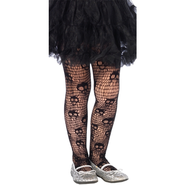 Black Net Pantyhose With Little Skulls Knitted Right Into The Pattern. Large Fits Sizes 7-10.