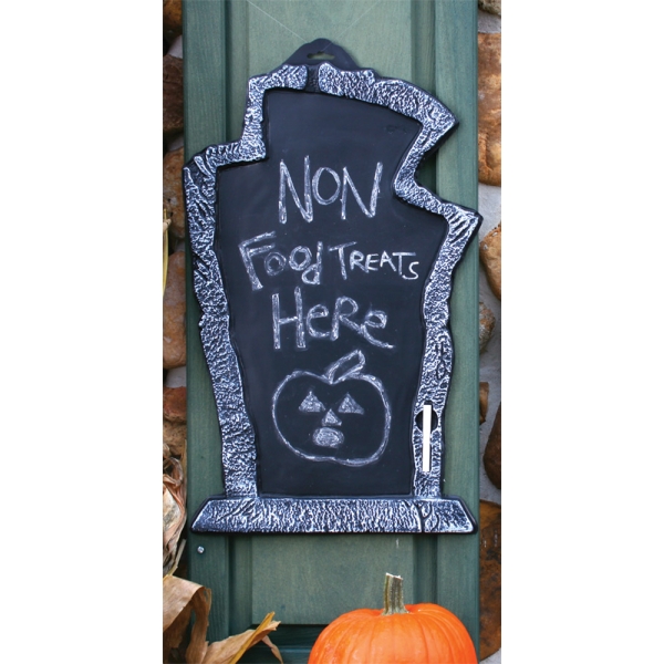 Broken Stone-Look Tombstone Chalkboard With Place To Hold Chalk. Let All The Little Boys And Ghouls Know The Latest Booooooos! 22" Tall. Chalkboard Tombstone: 100% Pvc Chalk: 60% Gypsum, 40% Lime.