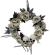 Elegantly spooky Wreath with Skulls and Roses is perfect for your Halloween décor! The lightweight foam frame is covered in large grey roses and black silk foliage, with black plastic fern fronds and two eerie hollow-eyed skulls. The black ribbon attached at the top makes it easy to hang on your door or wall. Wreath is approximately 15 inches in diameter.